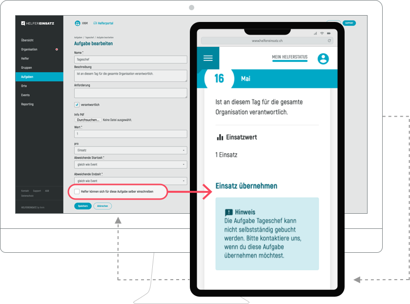 Es gibt Aufgaben, bei welchen ihr die Kontrolle über die Einsatzvergabe haben wollt. Helfereinsatz bietet auch diese Möglichkeit.